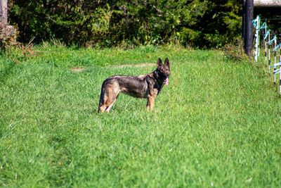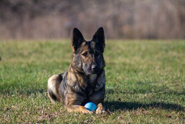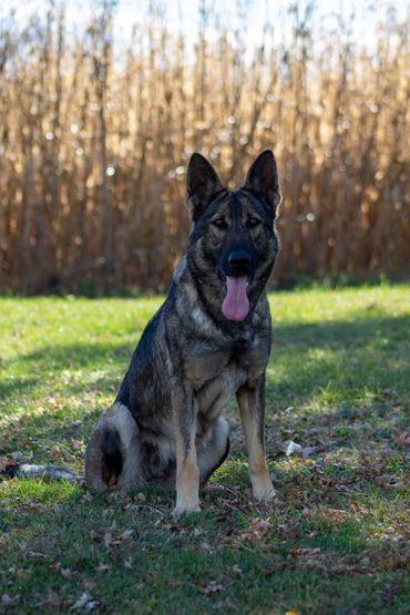 Gracie is retired from breeding, spayed. She is calm in the home, quiet in crate, good with male dogs but selective with females. Gracie is not destructive in her kennel run, clean dog, easy keeper. Potty/house trained however not left in home loose without supervision. Protective of the home/family & can be aloof, simply doesn’t seek attention from others. Has great drives, foundation work & hard full grips if wanting a fun sport dog without the heat cycles. Gracie has always been kind and accepting of my young children. She is one that wants to be everywhere you are & doesn’t run off.