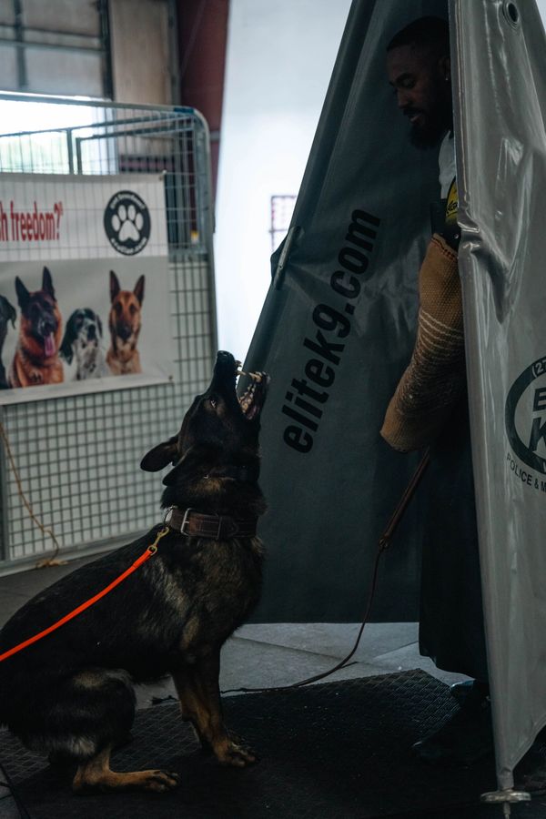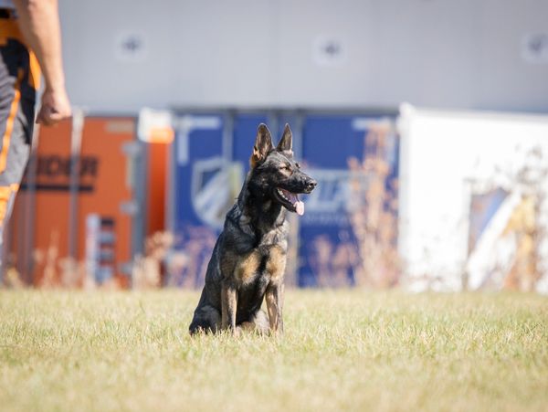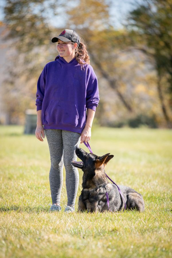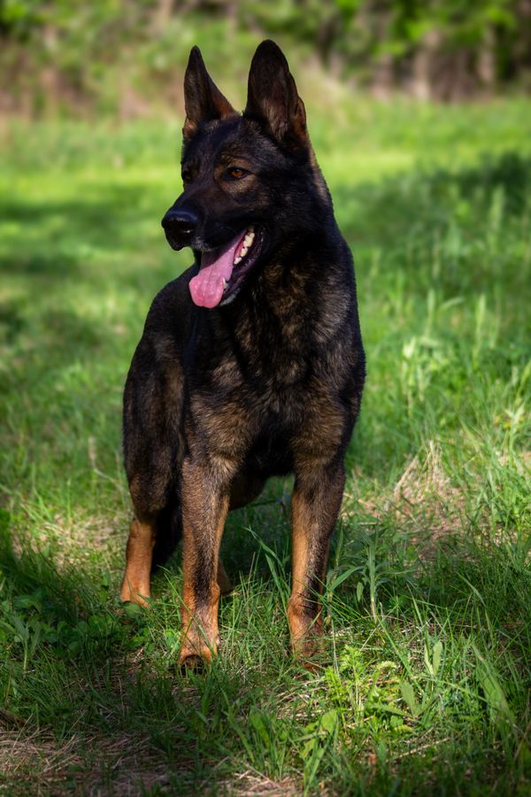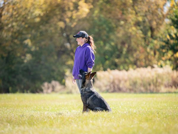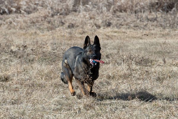 Cerb has very high food and toy drive. He is a natural tracking dog who settles easily into his work and demonstrates concentrated, methodical behavior throughout the track. He is a biddable, animated, and easily motivated boy in obedience, which makes working with him in this phase so much fun! He shines in protection, where he shows exceptional speed and power and thrives in confrontation with the helper. He demonstrates quick and accurate striking behavior, deep and calm grips, and intense possession.